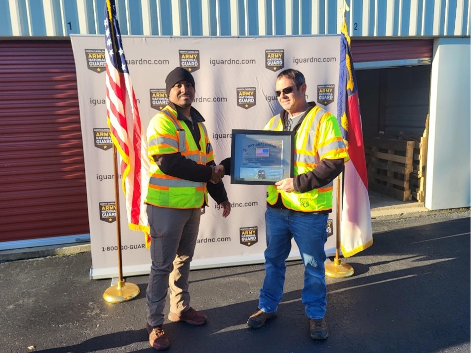 Ken invited his USIC team members to his re-enlistment ceremony and presented Operations Manager Dave Yackel with a plaque from the Army National Guard recognizing his support of employees serving in the military.